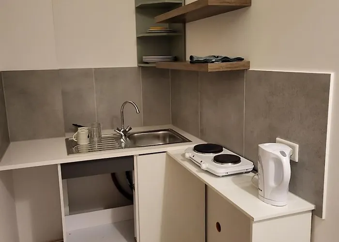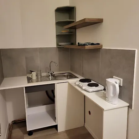 Die 30 m^2 große Kleine Wohnung Naehe Reihn ist mit einer kompletten Küche ausgestattet.